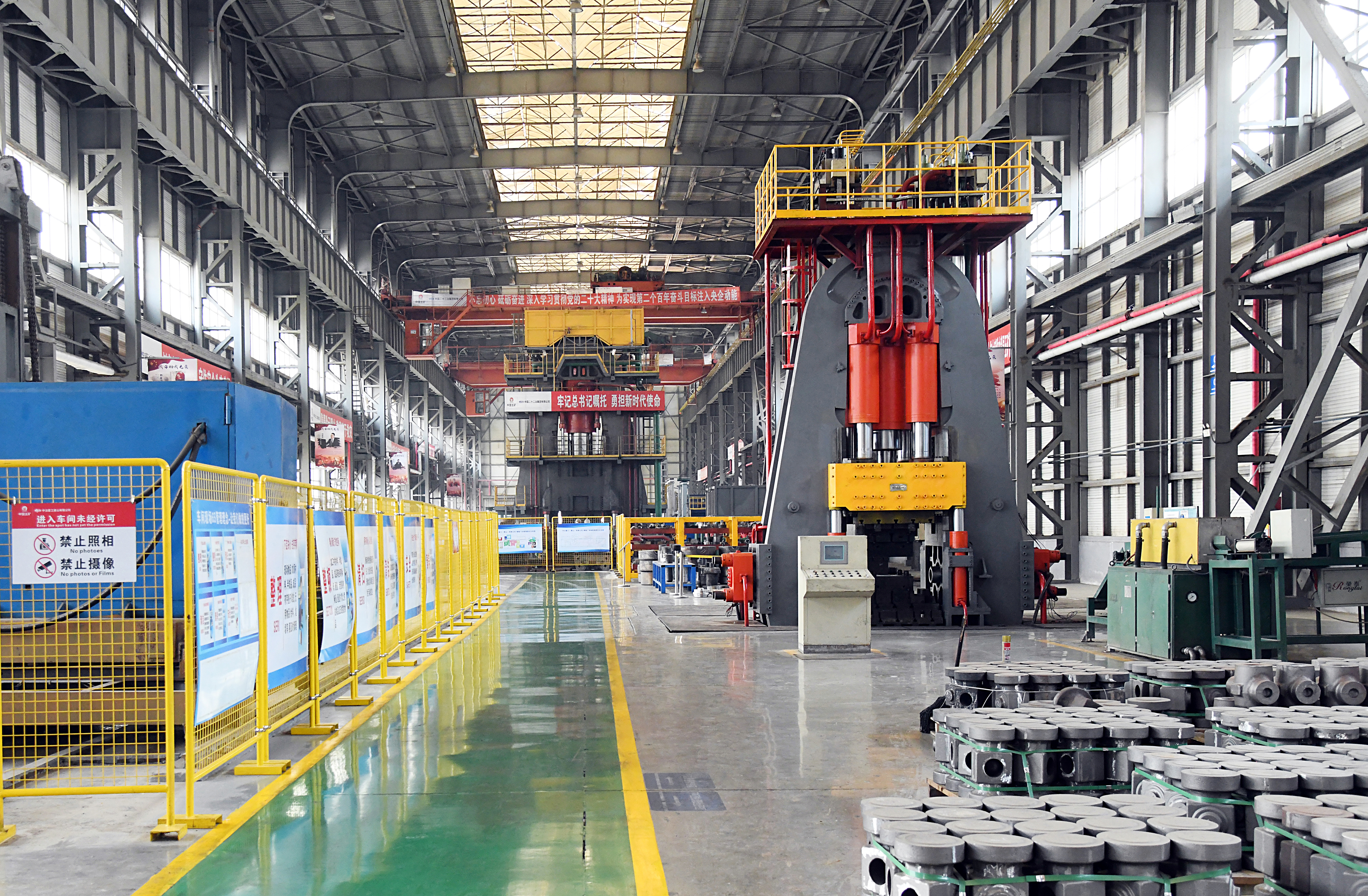 由中國二十二冶生產(chǎn)的重型壓機及產(chǎn)線擁有預應力鋼絲纏繞、特重型設備原位安裝、厚板焊接等核心技術,產(chǎn)品涵蓋(多向)模鍛液壓機、板片成型液壓機、換熱片壓機、海綿鈦壓機、特色中小型壓機等工藝生產(chǎn)線及配套設備。產(chǎn)品榮獲國家科學技術進步獎、國家優(yōu)質(zhì)工程獎、冶金科學技術獎、魯班獎等多項榮譽。